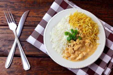 - Baixe o fogo e coloque o creme de leite, mexa bem e sirva a seguir.